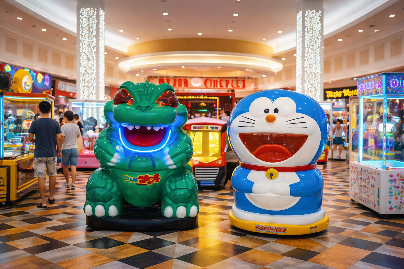 Finns en stor hall med arkadspel på översta våningen, precis intill biografen.