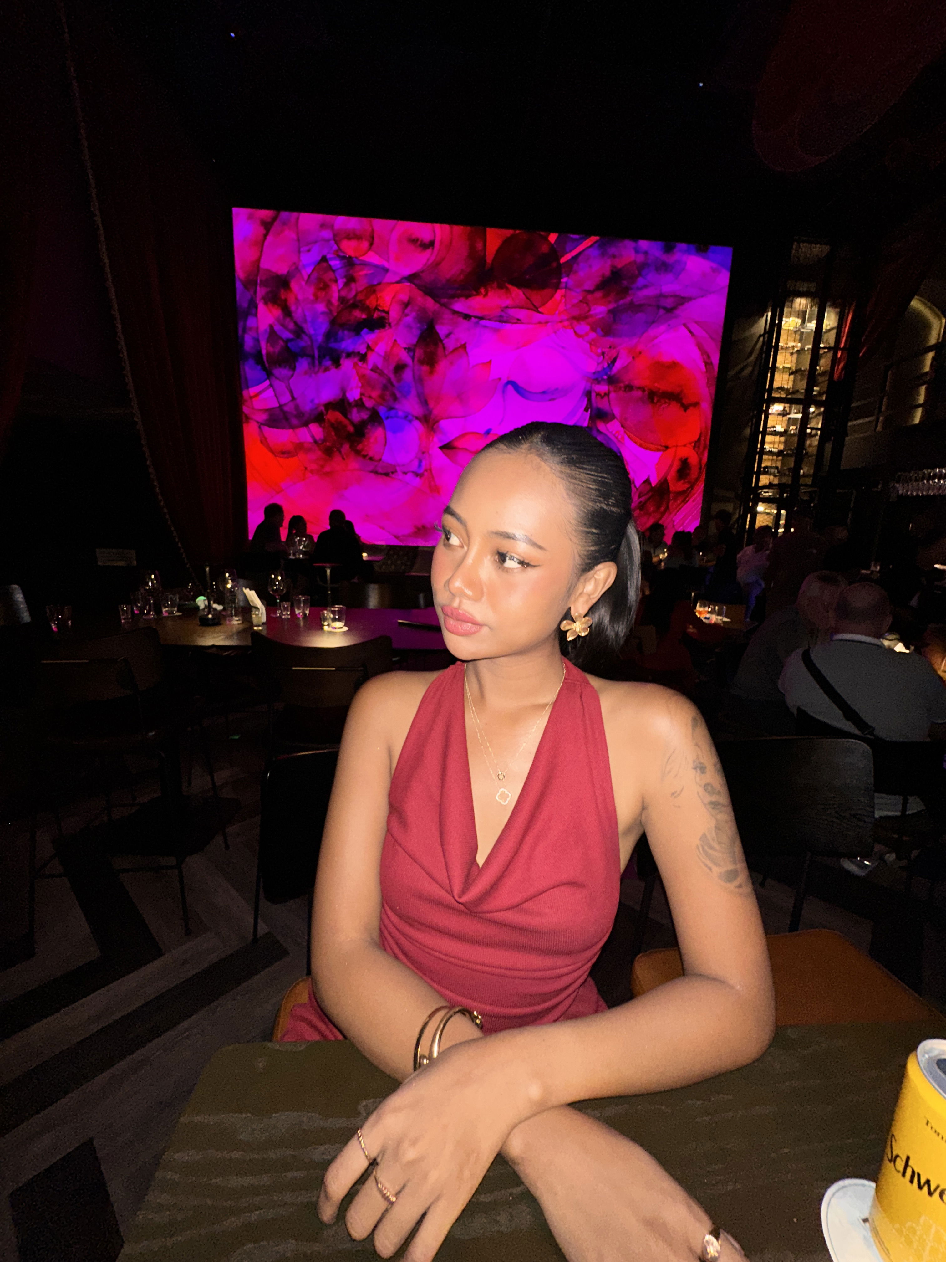 Ljudet är premium, ljuset är snyggt och cocktailsen håller hög nivå. Det är mer klubbkänsla än klassisk thaibar – och faktiskt lite Stockholmsfeeling över det hela. För en stund glömmer man nästan att man är i Thailand.