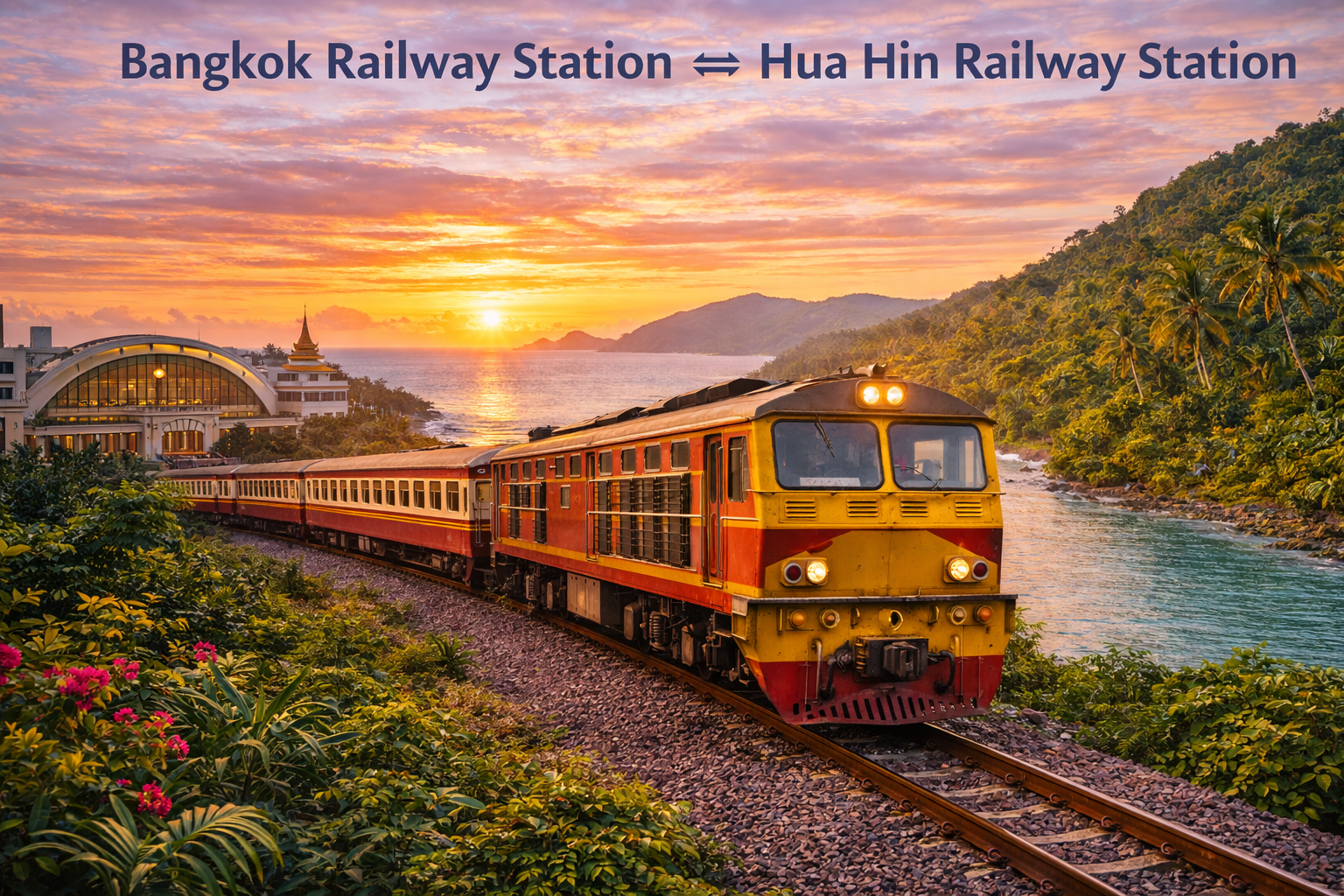 Hur tar man sig till Hua Hin från Bangkok? Oavsett om du landar på Suvarnabhumi Airport (BKK), Don Mueang (DMK) eller redan befinner dig i centrala Bangkok finns flera smidiga alternativ.