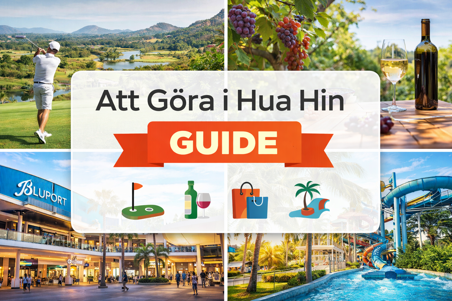 I Hua Hin kan du spela golf i världsklass på Black Mountain, åka vattenrutschbanor på Vana Nava, eller njuta av vinprovning på Monsoon Valley Vineyard med utsikt över bergen. Du kan strosa runt i gallerior som Bluport och Market Village eller ge dig ut på små äventyr utanför stan.