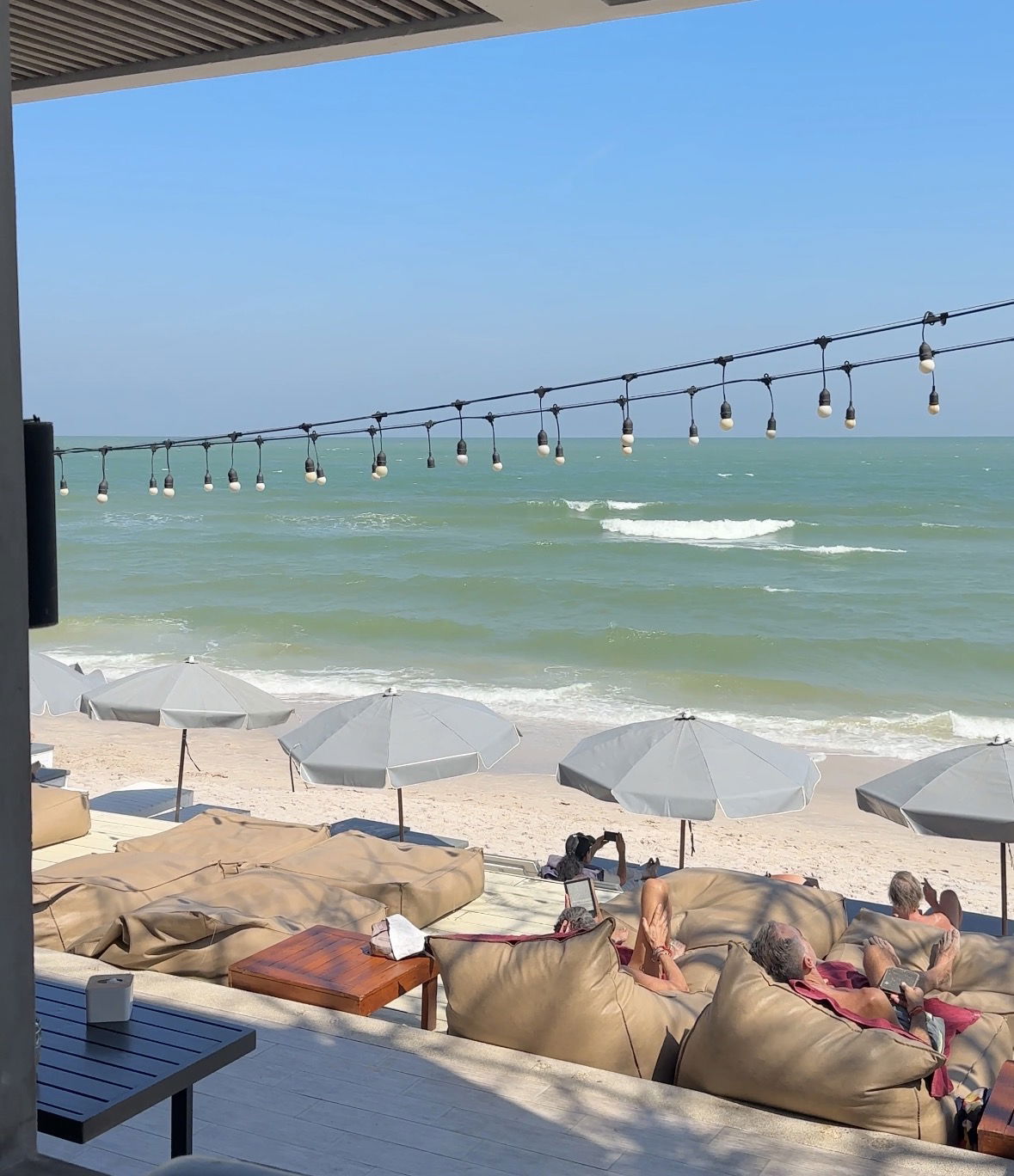 Otroligt läge mitt på Hua Hin Beach. Mysigt och prova gärna pizzan som är riktigt bra. Perfekt ställe för sen lunch.